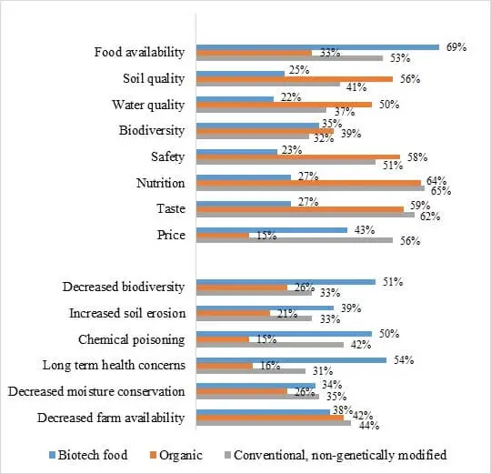 [Survey] respondents, however, strongly believed that organic and non-GM foods are safe, have higher nutrition and would not have long-term health effects. Whereas in the responses to biotech foods only one-quarter felt they were safe and nutritious, and 54% felt there were long-term health concerns, when in fact these foods are equal in all these aspects to similar foods from organic and conventional production.